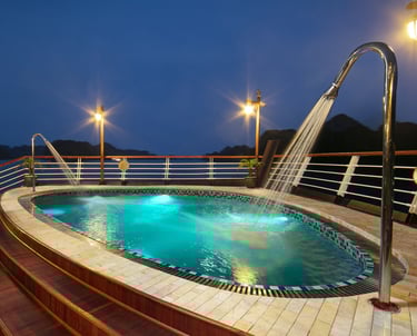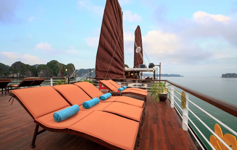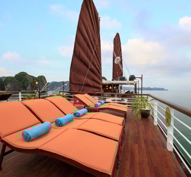 Back to 5Star Amanda Luxury Cruise and relax on cruise. It’s time for Sunset in Lan Ha Bay. There’s something magical about sunsets. It’s not only the colours but the feeling, the atmosphere, the temperature. The way you feel at a certain moment. Enjoy our “Sunset Party” and "HAPPY HOUR" - Buy 02 get 01 drink
