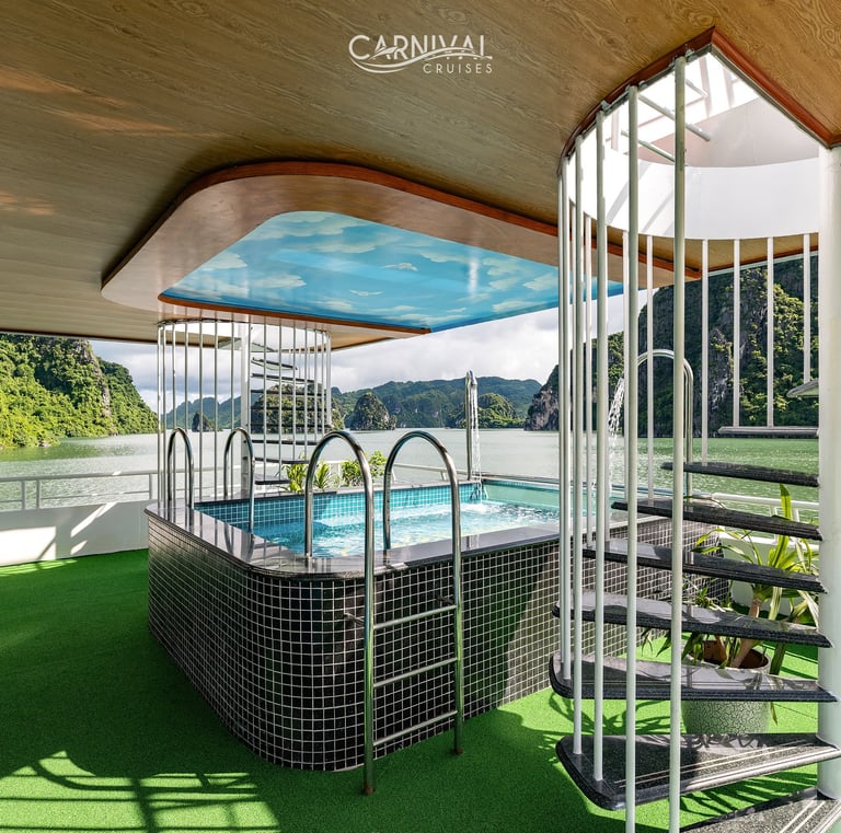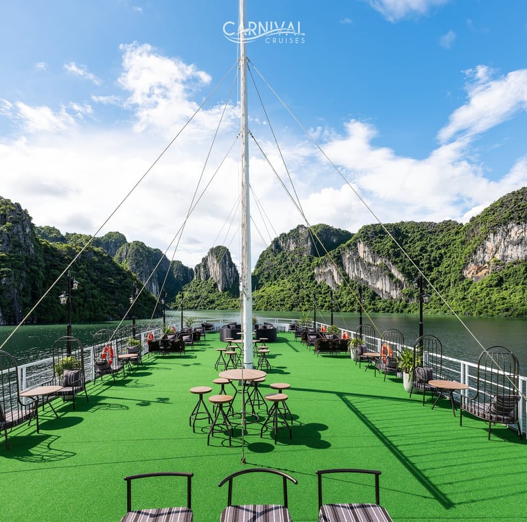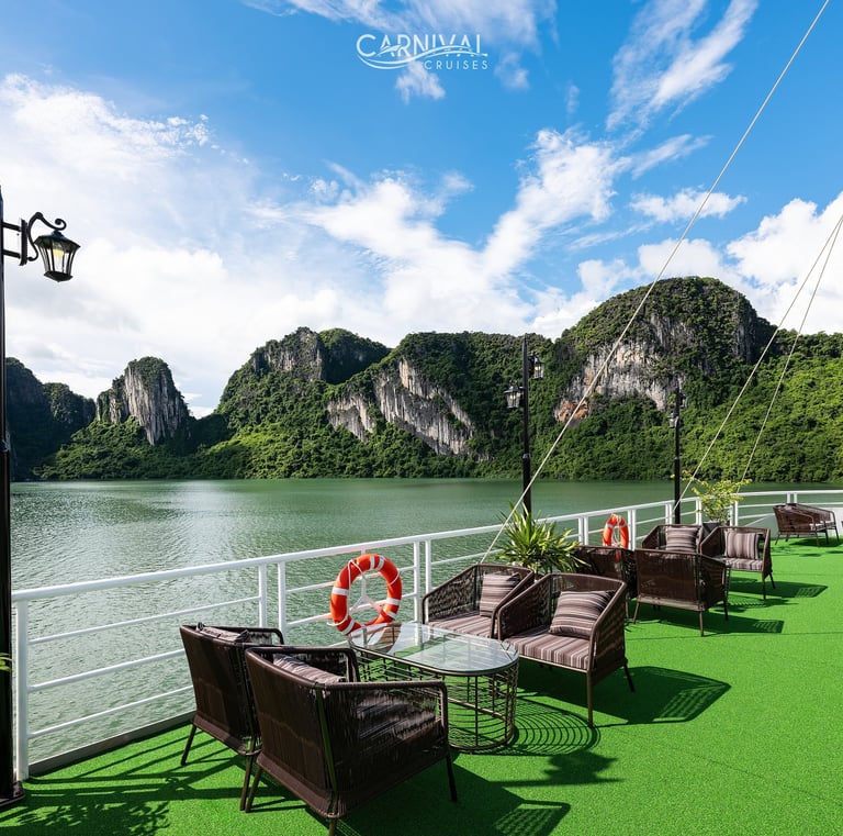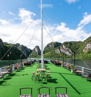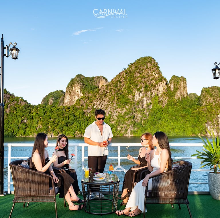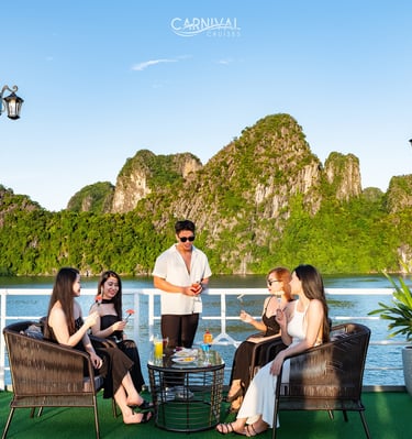 9:45 AM: Your adventure begins as you arrive at Tuan Chau Harbour, where you'll check in at Carnival Cruises’ area.