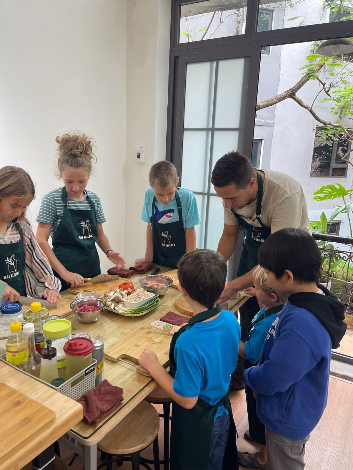Once cooking is done, we sit down together in our garden-view dining space to enjoy the meal you’ve made.