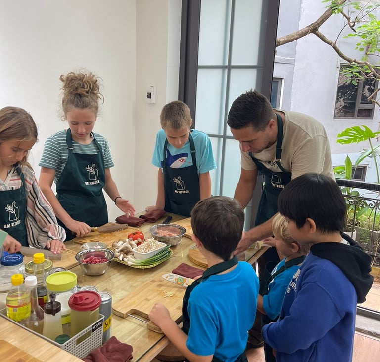 This is a real home, not a staged cooking studio. Think leafy garden, plenty of fresh air, and a café-style space where locals actually relax. Shoes off, shoulders down.