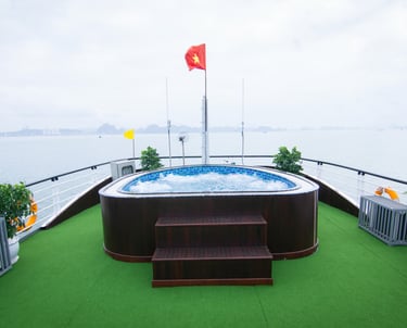 Be amazed by the only day cruise in Halong Bay that offers a private Jacuzzi on board, providing unrivaled relaxation and comfort
