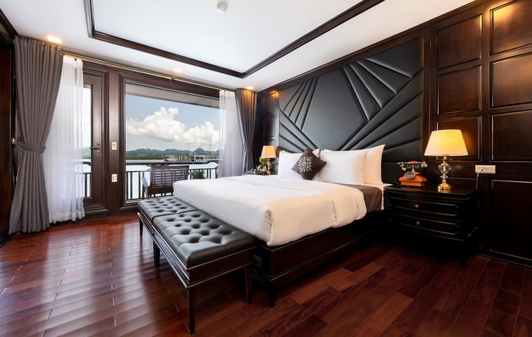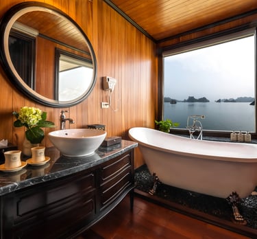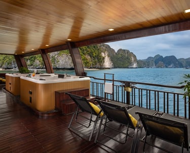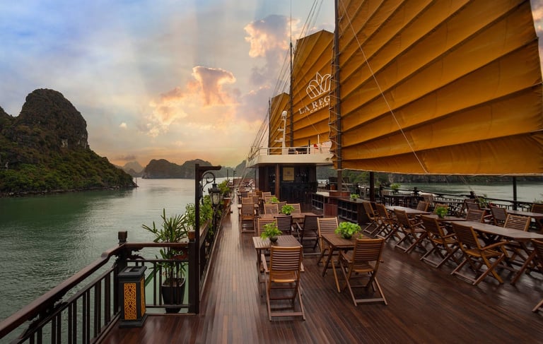 11:30 Arrive at La Regina private lounge – Lot 24, Tuan Chau Marina – Ha Long, enjoy welcome drink and express check-in before boarding.