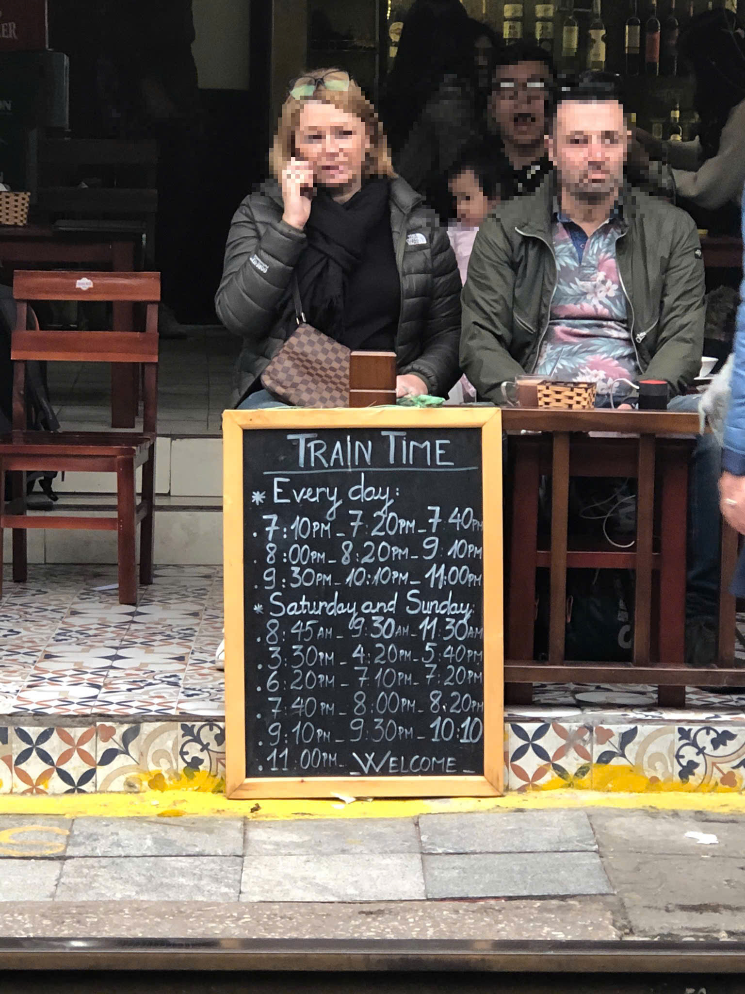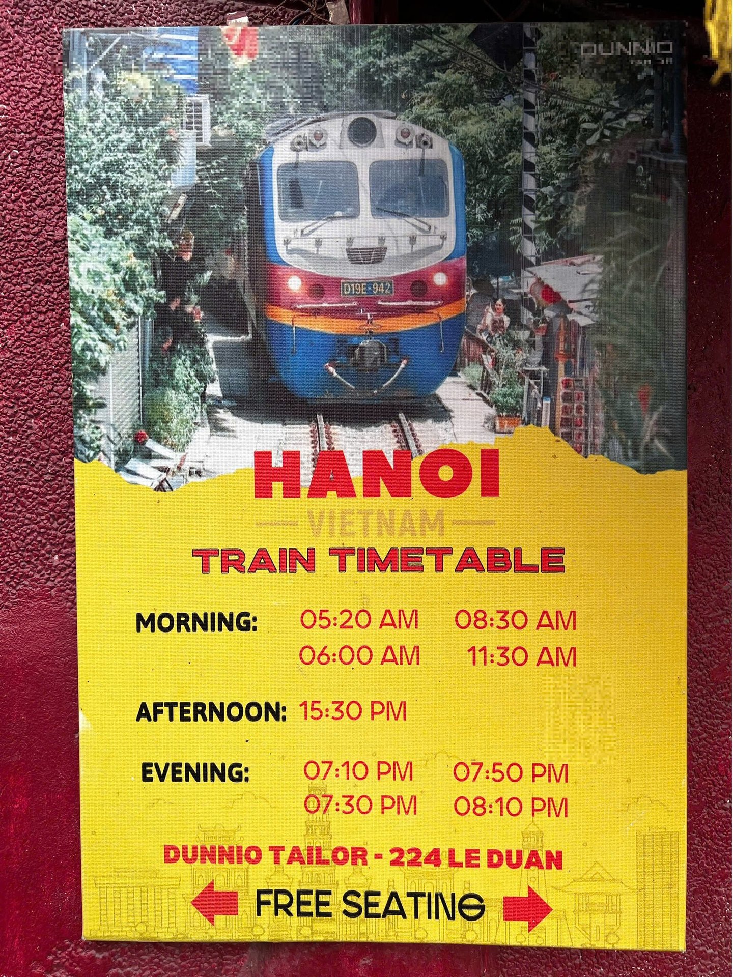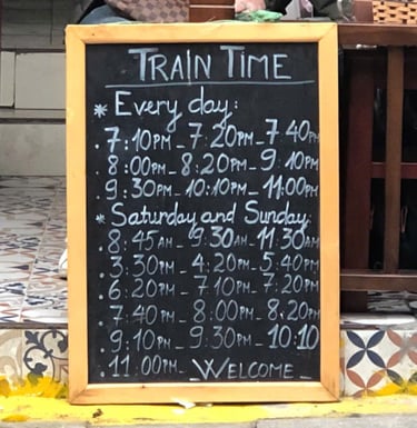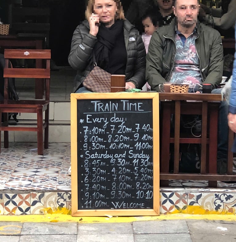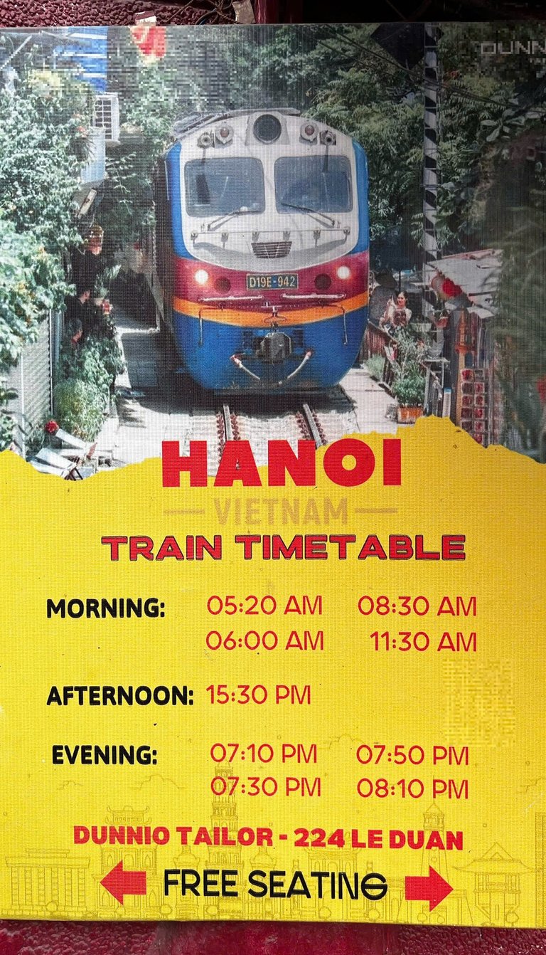 Bottom pic: Tentative schdule at Le Duan train street.